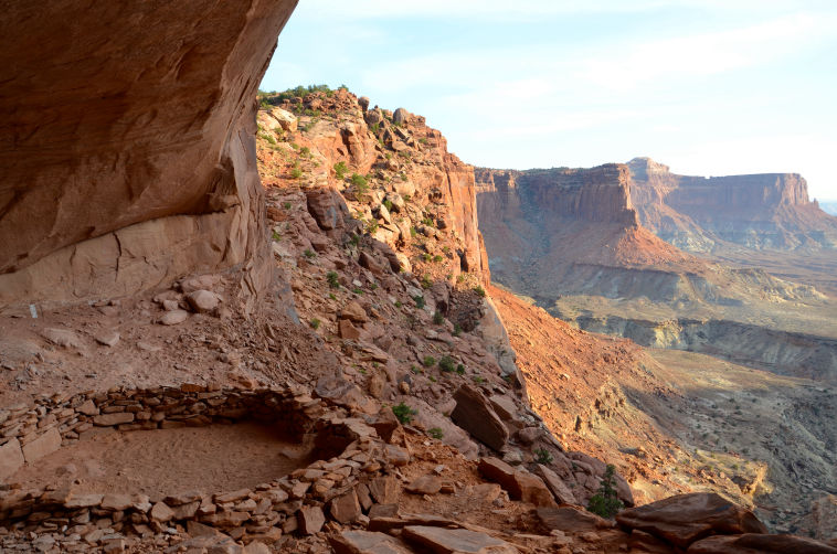 False Kiva is a human-made stone circle created by the Anasazi. While located in a naturally occurring cave,The False Kiva trail leads to a Class II archaeological site in the Island in the Sky District of Canyonlands National Park near Moab. It's protected more by its unmarked status than anything else. It is not necessarily easy to reach as it’s not on any National Park maps as a result of this status. To reach it, you have to quite a bit of exposed (but not really dangerous) scrambling along a sheer Canyonwall until you suddenly reach this magical place.